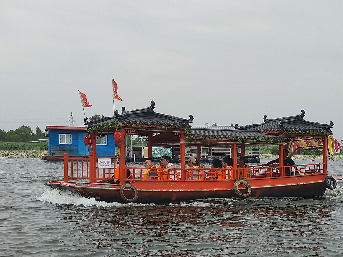 中午來到白洋淀農(nóng)家樂,我們品嘗到了各種白洋淀特色的農(nóng)家菜,大家在這里品美食,賞美景。午飯后,我們就開啟了白洋淀之旅。泛舟淀中,清風(fēng)拂面,蘆葦搖曳,自然風(fēng)光美不勝收。